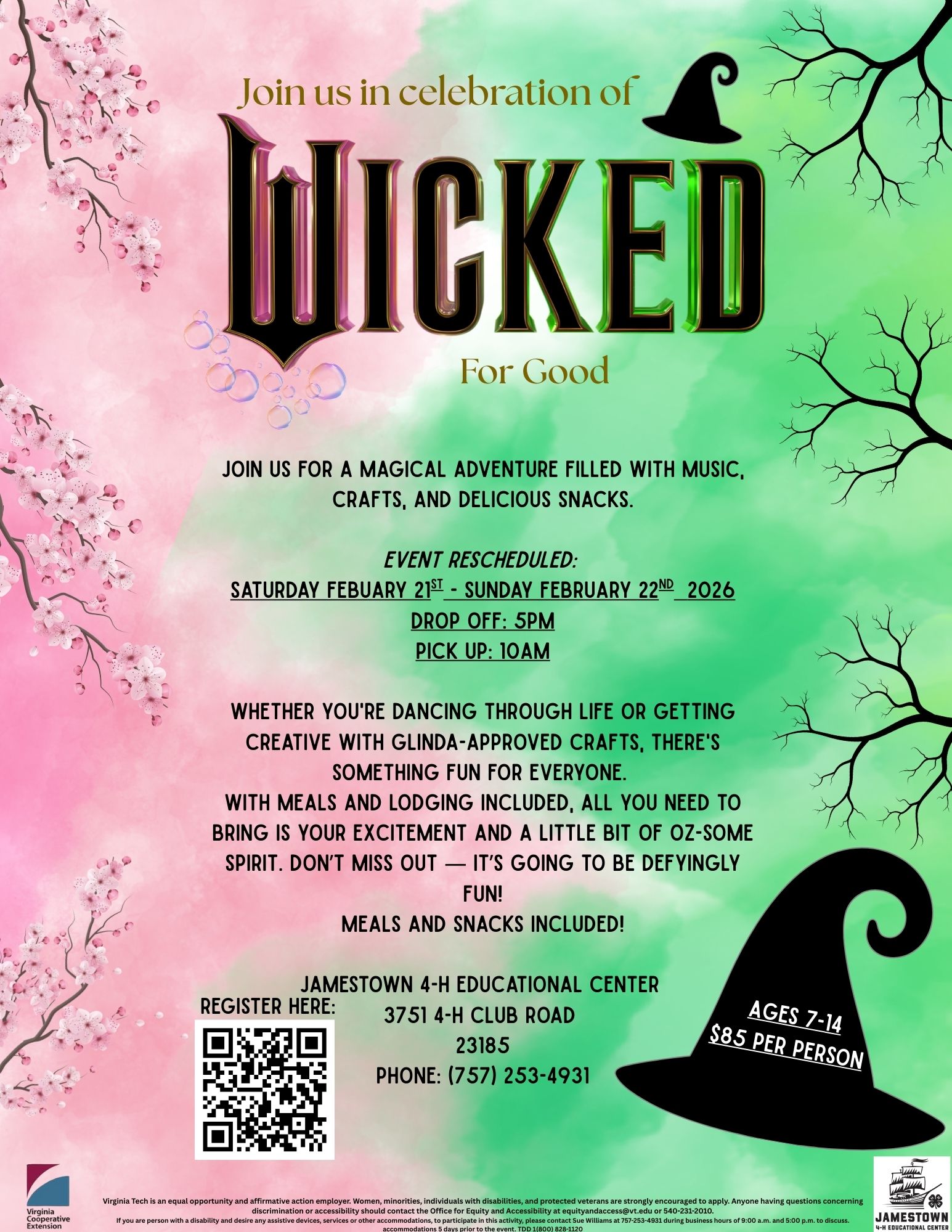 Step into a world of magic and imagination in celebration of Wicked: For Good! Campers will have an unforgettable experience filled with music, creative crafts, and delicious snacks that bring the magic to life. Don’t miss out on this defyingly fun weekend where memories are made and magic is everywhere!
